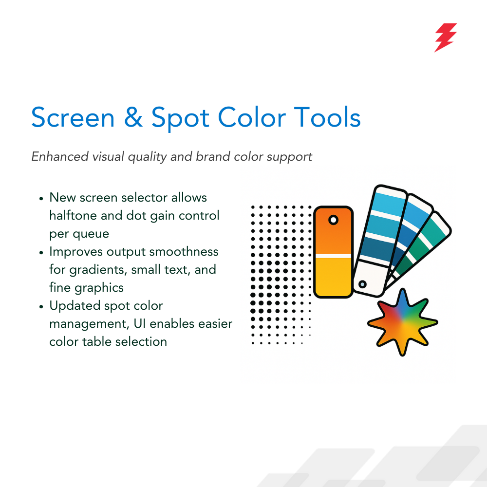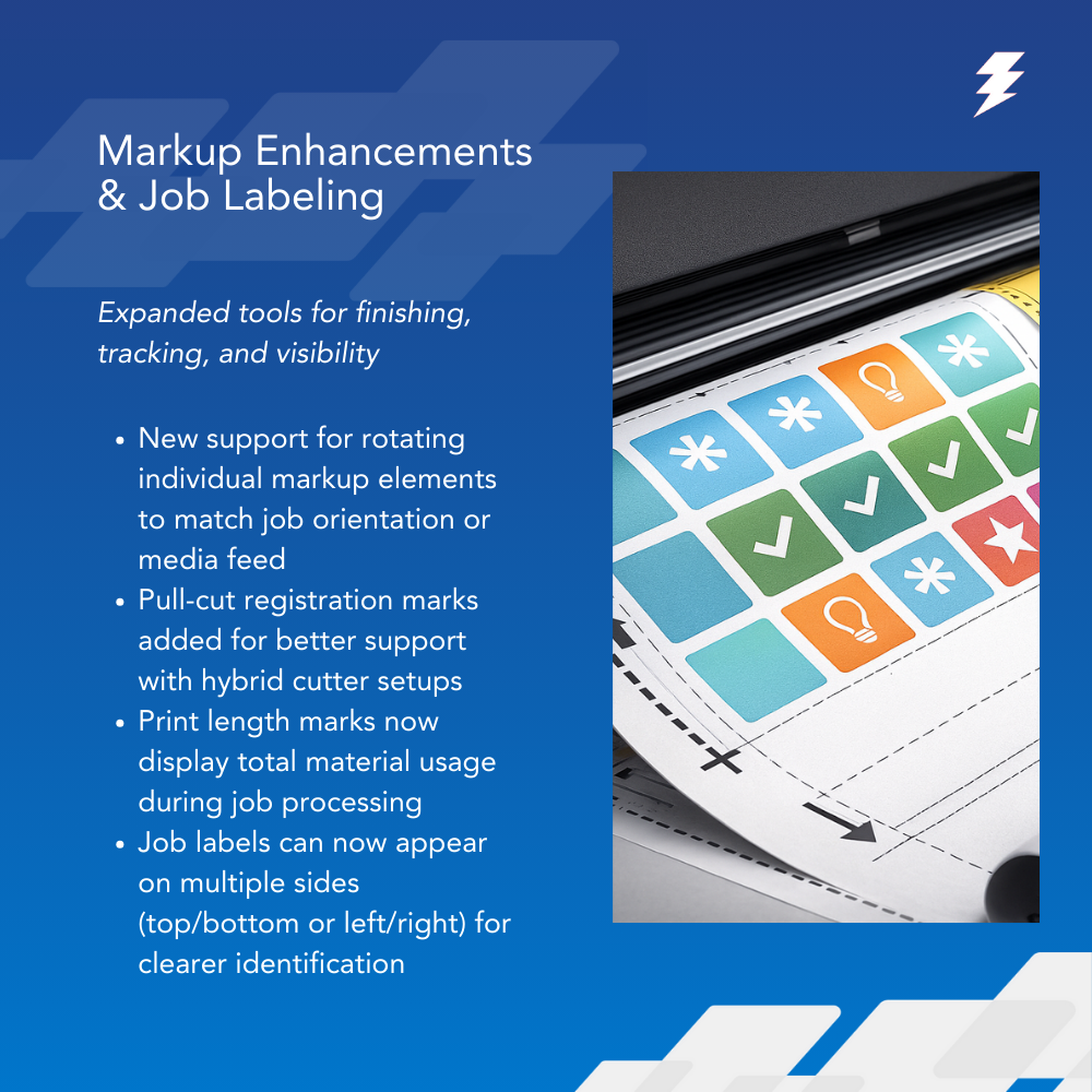 configured, AJS automatically imports, organizes, and routes jobs to the appropriate printer or queue—removing manual sorting and increasing efficiency in high-volume production.